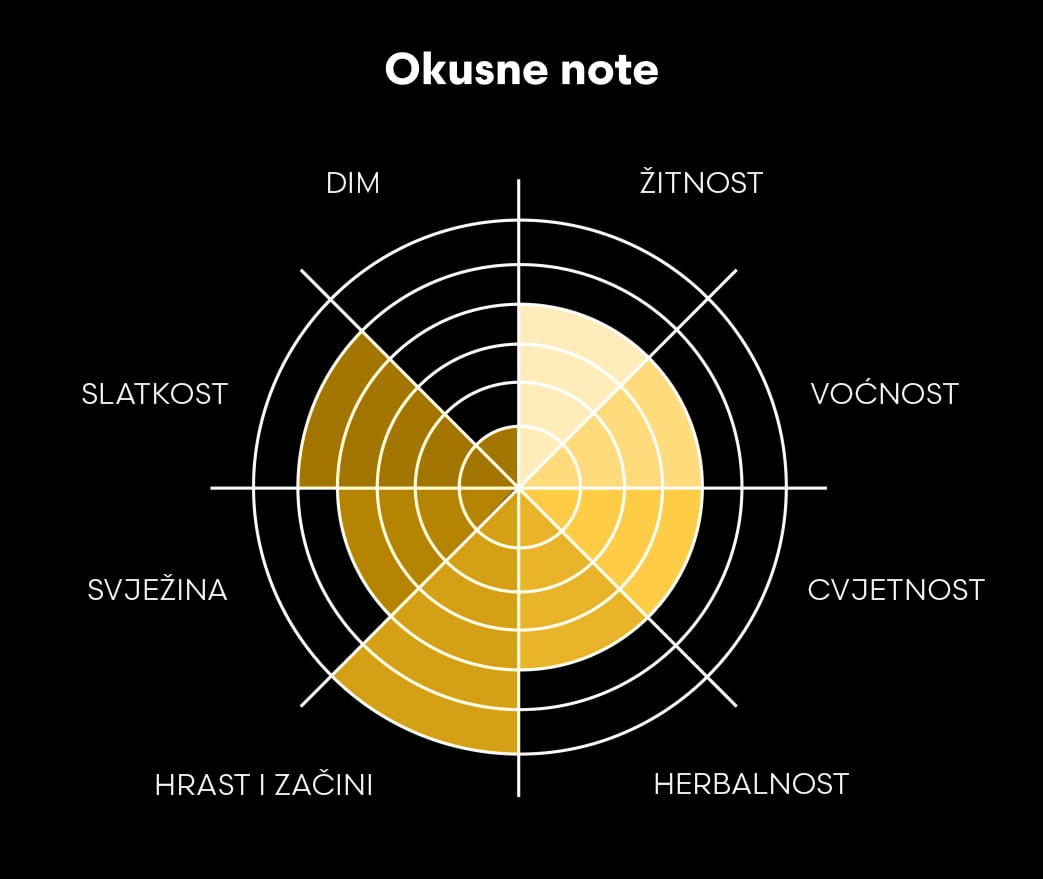 Four Grain Whiskey prva je edicija iz naše destilerije. To je kompleksan destilat koji reinterpretira tradiciju i pristupa joj na inovativan način. Inspirirani dijelom škotskom preciznošću, dijelom američkom ekspresivnošću, uzeli smo najbolje od oba svijeta i, iznad svega, dali piću svoj osobni pečat. Sastav temeljen na četiri pažljivo odabrane žitarice – kukuruza, ječma, pira i raži – podiže vas do sedmog neba!