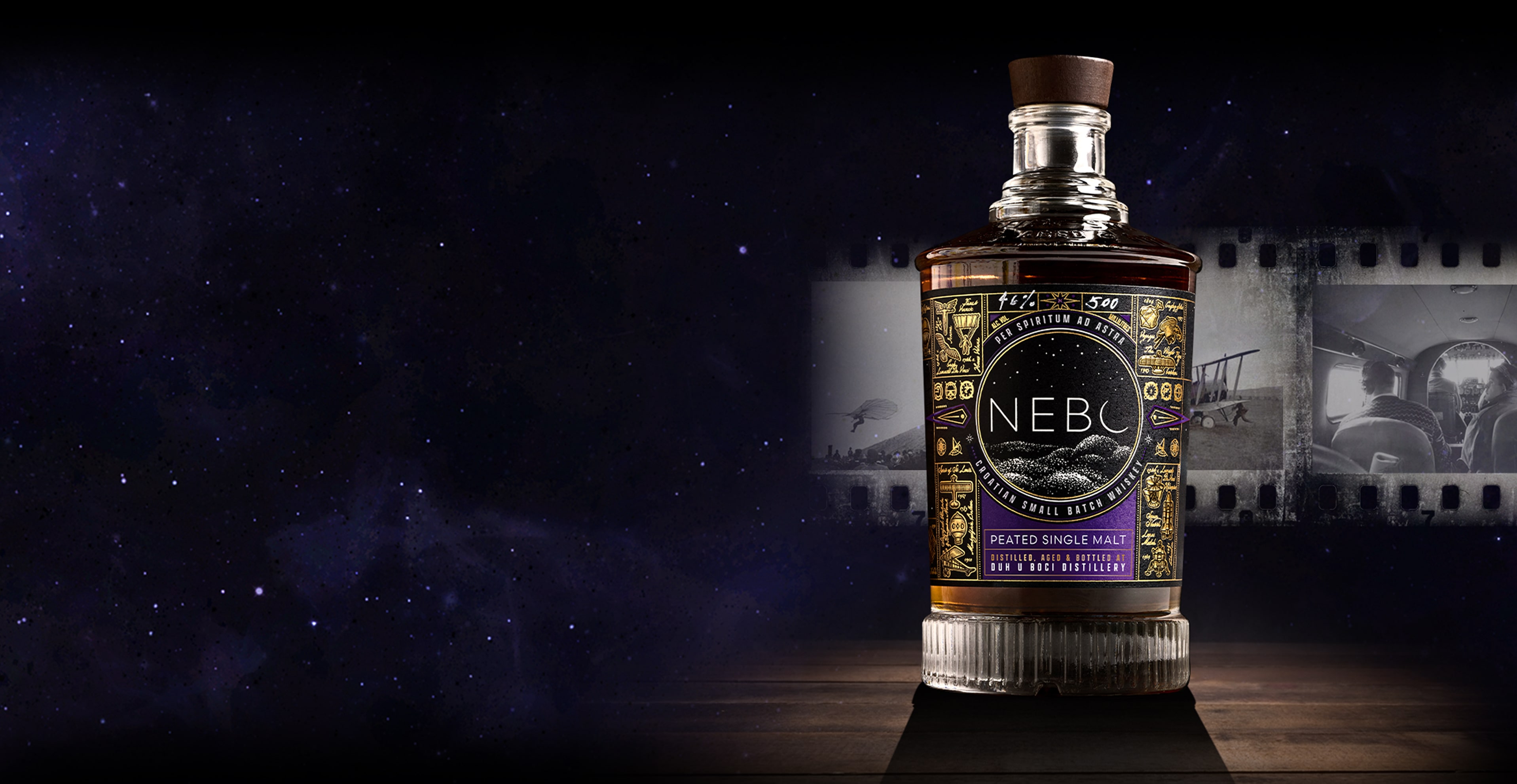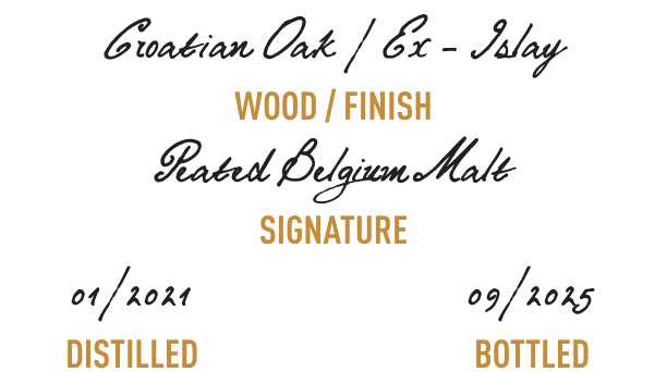Peated Single Malt predstavlja našu posvetu škotskoj tradiciji i Islay stilu, ali s prepoznatljivim autorskim pristupom. Koristimo pažljivo biran visokokvalitetni ječam uvezen iz Škotske, a temelj recepture čine tri vrste slada: tresetom dimljeni slad, bazni dvoredni slad te posebni specijalizirani sladovi iz Belgije, čiji sastav ostaje naša mala tajna.