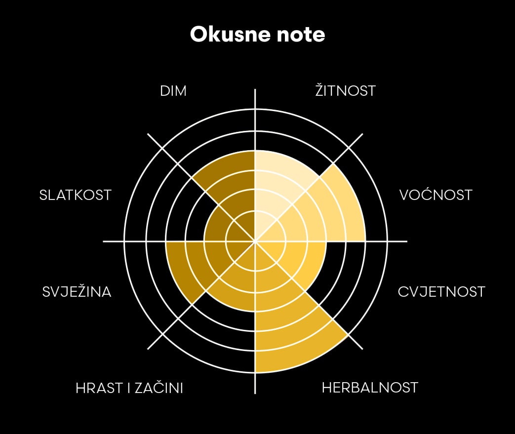Kompleksnost našeg whiskeyja ne proizlazi samo iz pomno odabranih sladova, već i iz pažljivo osmišljenog procesa odležavanja. Koristimo tri vrste hrastovih bačvi koje svaka na svoj način oblikuje završni karakter pića. Nove bačve od hrvatskog hrasta (Quercus robur), izrađene u bačvariji Golub, piću daju bogate, drvene note zahvaljujući svojem netretiranom, virgin oak profilu. Rijetkost u svijetu viskija čine korištene bačve od američkog hrasta u kojima je prethodno odležavao dimljeni bourbon, a završnu dimenziju donose preko 30 godina stare bačve iz škotske regije Islay, prožete klasičnim aromama dimljenog škotskog whiskyja. Vjerujemo da se upravo kroz dosljednu posvećenost svakom detalju u svakoj fazi proizvodnje gradi dubina i osobnost našeg konačnog proizvoda.